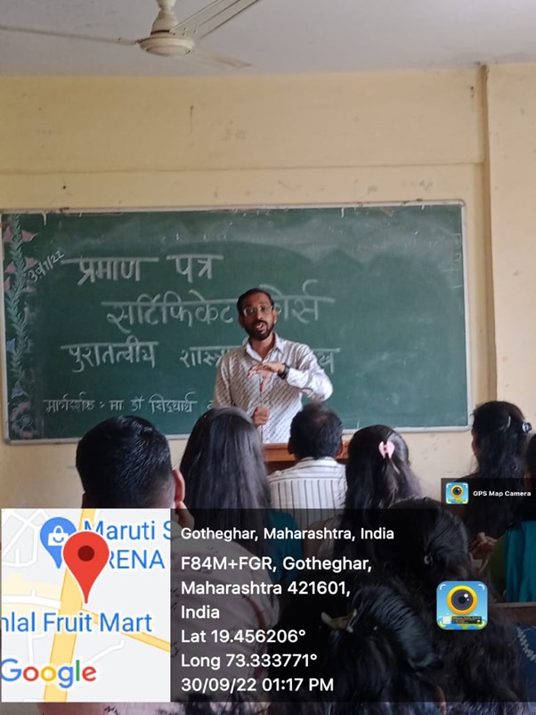 The Department of History organized Certificate Courses on Introduction to Archaeology on 27th September 2022 , Tuesday